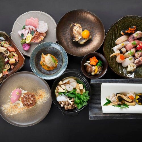 Beneath this name, which references the chef who opened the restaurant and the capital city of Japan’s Ishikawa region, lies a gateway to a different culinary world. The traditional kaiseki cuisine, recognised as one of Japan’s most refined styles since it was practised in the imperial court and accompanied the tea ceremony, aims to delight diners in this small, minimalist restaurant, with a single counter for eight guests. The courteous Chef Paulo Morais, who works in full view and explains each dish in detail, offers several menus (three at lunchtime, with the same appetisers, and six during dinner service) that remain faithful to the kaiseki philosophy; admittedly with some leeway, yet still respecting its essence. In the evening, everything takes on a more elaborate and haute-cuisine style. The quality of the fish and nigiris (scallop, clam, tuna belly, turbot, scarlet prawns...) is truly spectacular!