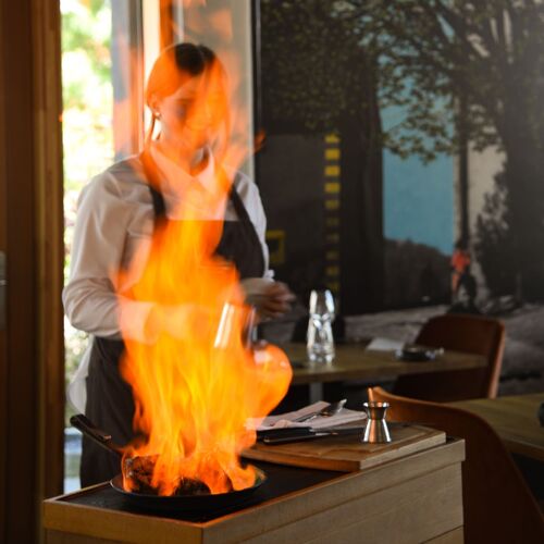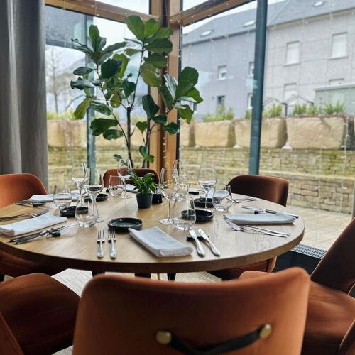 The school bench at the entrance and the blackboard pay tribute to Aal Schoul’s former vocation as a village school; it is now a warm eatery adorned in huge works of art. Red meat is omnipresent on the menu, but the chef’s bold, unconventional recipes are what most intrigue. For example, his recipe for poultry breasts rolls out a whole series of cooking techniques, while his highly individual take on a Caesar Salad features a sweet-sour vinaigrette with pili that adds a distinctive kick to the entire dish. An intriguing meal awaits you at Aal Schoul!