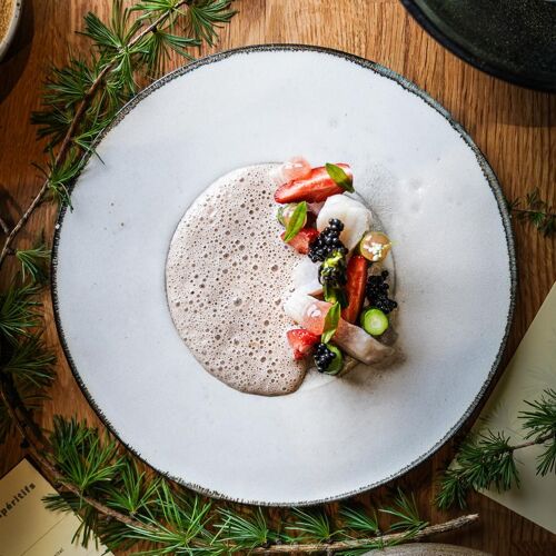 Augustin Massinon and Darius Van Hoef have returned to their roots as they roll out their nature-inspired gourmet concept. First of all, they tastefully refurbished this Ardennes edifice whilst maintaining its authentic character. We recommend booking a table downstairs to make the most of the view of the open kitchen. The chefs, who are committed to using locally sourced produce as much as possible, pool their creative talents to craft beautifully plated dishes. Impeccable handiwork underscored by local ingredients, exotic seasonings and fermented flavours, examples of which include a tartare of langoustine with fermented radish, green apples, poached and foamy oyster and a hint of blackcurrant. The menu, which changes every five weeks, both surprises and enchants.