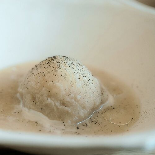 Picture yourself standing in a lush mountain valley, listening to the murmur of a nearby stream. This is SÉN’s ‘watershed cuisine’, a prix fixe experience in which time slowly passes and everyday cares are forgotten. The focus of this fare is on the foods of the Kumano River valley. The bounty of this mountain stream, which flows from the village of Tenkawa to the sea, includes vegetables, fish and game supplied by local farmers and hunters. In tribute to a region that prospered through forestry, the dishes are cooked over firewood.