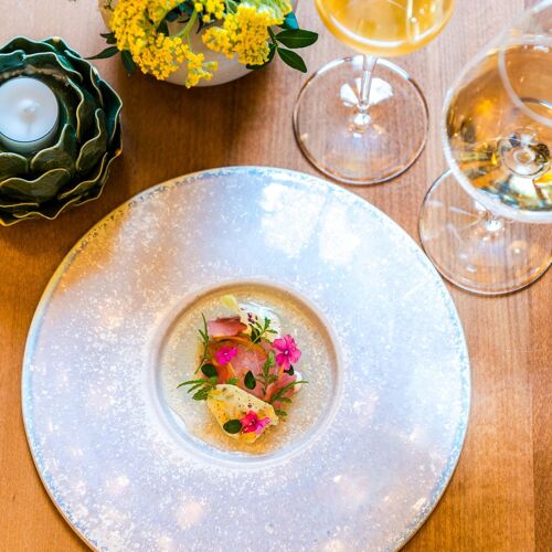 Somewhat tucked away in a courtyard (where there is a fabulous terrace in summer) and just a stone's throw from the cathedral, this appealing "casual fine dining" restaurant awaits. Almost reminiscent of a stage in a theatre, the stylish dining area features a striking ceiling with densely packed pendant lights and an eye-catching open kitchen. Here, French-born Frédéric Morel draws on his Breton roots and incorporates influences from his adopted home in Northern Germany and adds a touch of modern creativity – his sauces and stocks are outstanding! When selecting his high-quality ingredients, he is mindful of the seasons and the region in which they are sourced. The "Morel's Tasting" set menu, which changes every month, is composed of six or eight courses. A four-course version is available on Sundays only (excluding public holidays and Sundays in December). The chefs personally serve and present the dishes. House-made alcohol-free pairings make for a sophisticated and creative alternative to wine.