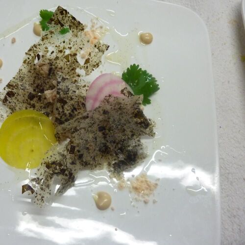 You would be well inspired to make a halt in one of the Basque Coast’s most beautiful villages. In addition to a small room decked in white wainscoting, this inn boasts an exquisite patio shaded by plane trees tucked away to the rear. The chef, former vice-champion of pâté en croûte (pork pie) which he changes each season, also has a knack with fresh fish straight from the local fish auction (illustrated by a tataki of tuna or a ttoro – shellfish soup), as with Hispanic-Basque produce. The lunchtime menu is a bargain.