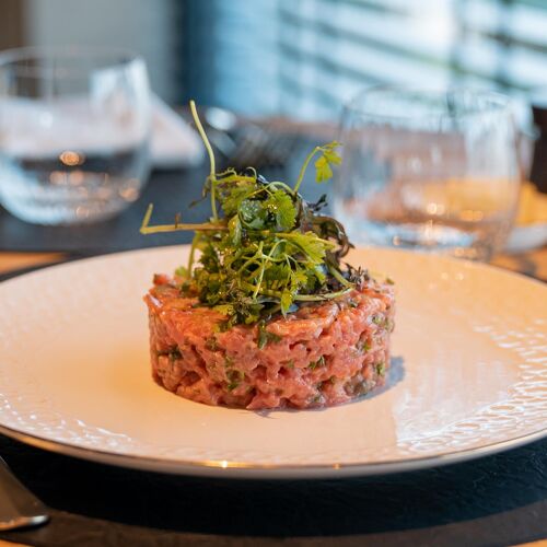 Burnished copper saucepans and a striking colour scheme set the stylish scene in this welcoming restaurant. The youthful chef, Louis Wauters, is a butcher’s son and proud of it. You will sample perfectly cooked rib of beef with a silky béarnaise sauce and French fries, but the chef is also keen to pamper fish and seafood amateurs. Flavour and generosity are the watchwords here.