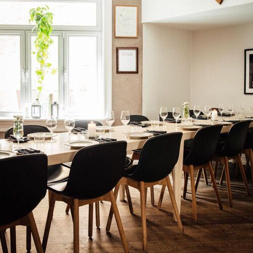 You’ll receive a warm welcome at this easy-going neighbourhood café-cum-restaurant, which always comes with a contented buzz. Coffee and homemade cakes are served in the morning, followed by a concise selection of dishes including soup and a burger from 12-4pm. The main show takes place in the evening though, when you’re presented with the choice of two tasting menus comprising rustic Norwegian dishes. In a nose-to-tail and stalk-to-tip approach, they attempt to use every part of their ingredients and make the most of fermentation techniques, such as in the rice cream with cherries and fermented plums.