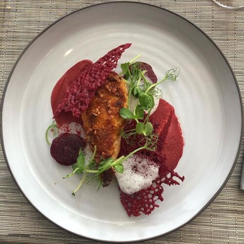 In a former textile mill on the banks of the Sèvre Nantaise, diners can enjoy a smart brasserie interior (red velvour banquette seating, bay windows) and the chef's delicious repertoire of dishes, which are full of flavour and lovingly prepared. Last but not least, service courtesy of a young and dynamic team.