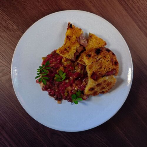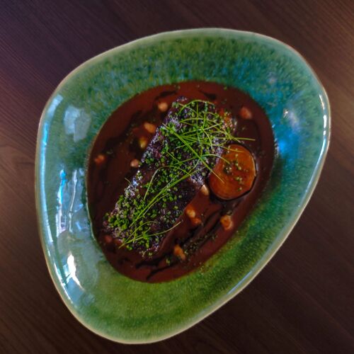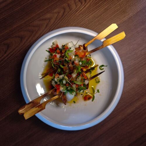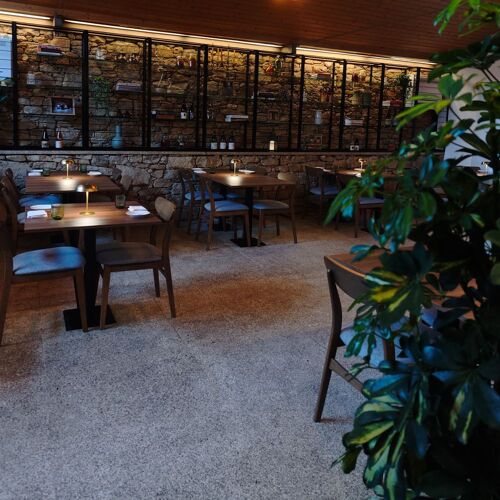 In a small alley next to the Forte de Leça da Palmeira stands Cibû, a charming restaurant that takes its name from a typical expression of the Trás-os-Montes region. The space shows Nordic influences, with stone walls and a predominance of wood in the ceilings and furniture, which define the character of the setting. In the kitchen is Chef Hugo Portela who, after working in renowned restaurants in Norway, Barcelona and Switzerland, decided to invest in his own team alongside his partner Sara Silva. The menu, designed for sharing, is inspired by traditional Portuguese dishes with touches from northern recipes, including delicacies such as Beef and Chaves bread, the small "Mindinha" rib, and fried "Pilchard" — not to mention the desserts, which are well worth saving a little space for!