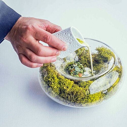 There are few places in Ribadesella with as much personality as the Villa Rosario hotel – the iconic Spanish colonial-style property dating back to 1914 that overlooks Playa de Santa Marina and is home to this restaurant. Featuring a glass-fronted terrace with splendid views of the Cantabrian Sea, Ayalga’s kitchen is run by chef Israel Moreno, a team player who, instead of considering himself to be the captain of the ship, sees himself as part of the crew on every watch. Options here include a concise, contemporary-inspired à la carte and two interesting tasting menus (Sabores de la Tierrina and Experiencia Ayalga), all of which feature dishes with a rare harmony, highly skilled technical detail, and superb flavours from the best local ingredients (in addition to newly created dishes such as the sirloin of venison with a spicy pumpkin purée, you’ll also find Ayalga’s classic recipes such as the egg with a foie gras and parmentier velouté). International wines have a strong presence on the extensive wine list here.