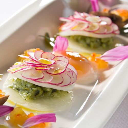 This inviting establishment on the way out of the village specialises in seasonal Mediterranean cuisine: courgettes, aubergines, olive oil and lemon accompany local fish and lamb from La Crau. The sublime south-facing terrace overlooks the leafy, well-tended garden. At the end of a flower-decked meadow, a handful of authentic guestrooms done up in Mediterranean colours await you.