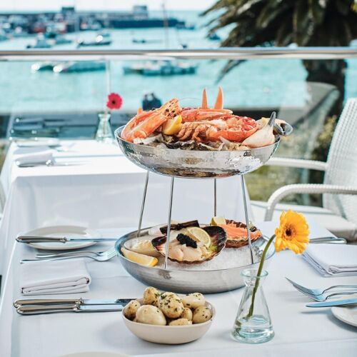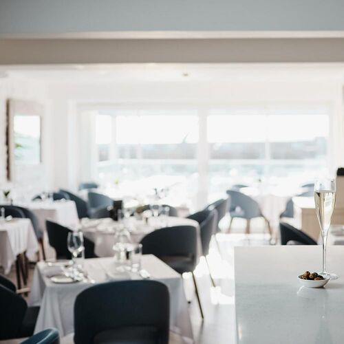 A well-known restaurant in a whitewashed house, with a smart heated terrace affording lovely harbour views. Modern European dishes feature island produce. The monthly changing lunch and midweek dinner menus represent good value.