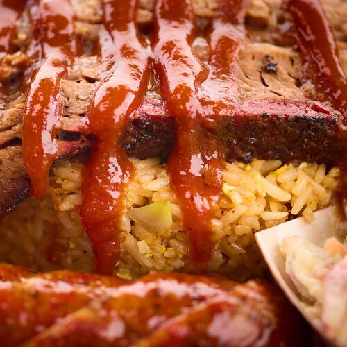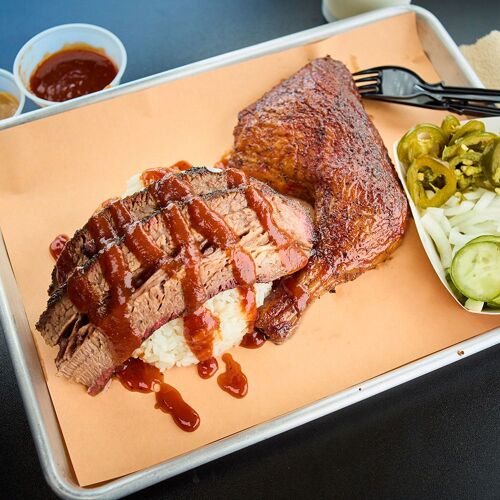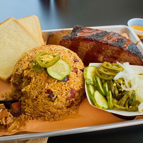 Chef Hong Tran originally cooked brisket as a backyard hobby but now finds himself running this bustling restaurant with his family in the greater Houston area. Long lines move quickly through this well-oiled operation, which previously shared a parking lot with a gas station just down the road. Practically everyone is here for the same thing, and Tran’s signature dish is a reflection of his Lone Star upbringing and Vietnamese roots: Jasmine fried rice tossed with fried egg and Chinese sausage packs proper wok flavor, and each order can come with two prime, melting slabs of brisket. No need to bother with the sides when you can fill up on the pork ribs, which are beautifully tender and delicately smoked.