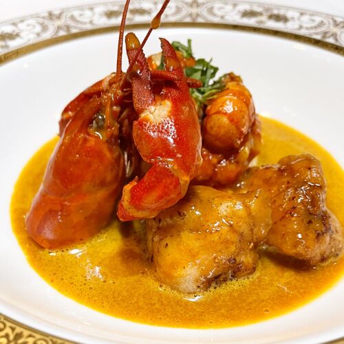 The chef opened a small restaurant, Ma Poule to celebrate the appeal of Jura, in eastern France. This region, with its beautiful forests, valleys and wetlands and its wonderful ingredients and people, made a profound impression on the chef. Chicken and morels in sauce vin jaune is a Jura dish in which the chef takes great pride. This dish is paired with specially produced yellow wine. The façade and interior, and even proprietress’s clothing, are yellow as well. A restaurant filled with love of Jura.