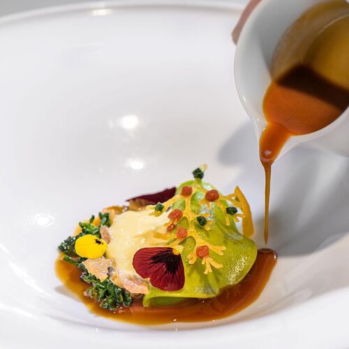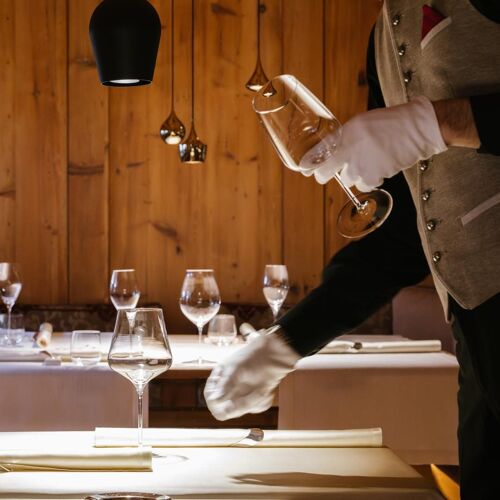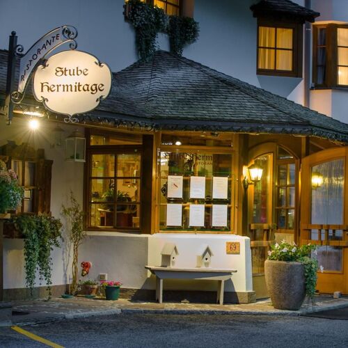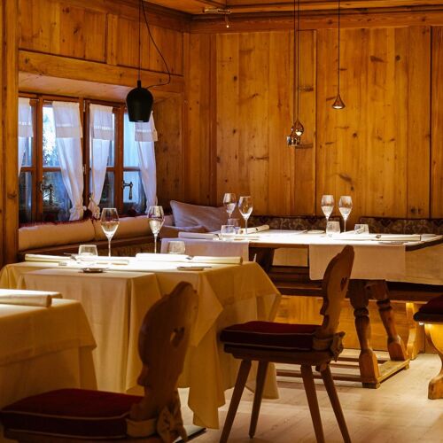 In a quiet and secluded location, inside the Biohotel Hermitage, the restaurant occupies an early twentieth-century stube: a wooden treasure chest with few tables, where you can be lulled into an evening of romance and haute cuisine, offered through various tasting menus. There’s one dedicated to freshwater fish, naturally one inspired by the high mountains with ingredients such as roe deer, wild garlic, alpine butter, horseradish, honey... and, surprisingly, one dedicated to the sea, concluding with an interesting vegetarian menu. Also noteworthy is a fine selection of cheeses (not exclusively local). Elegance here is the rule and will envelop you, from the well-presented dishes to the atmosphere.