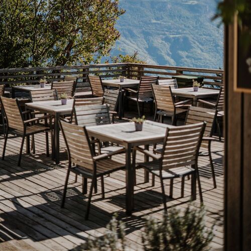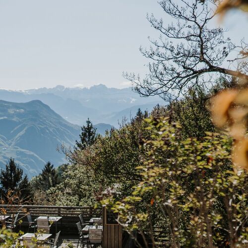 Following a road that twists and turns uphill, surrounded at first by vineyards and fruit trees and then by woodland, you climb to an altitude of 900m to reach this restaurant run by the Geiser family, who have been serving simple yet delicious regional (and Italian) cuisine here for three generations. With a focus on seasonal ingredients from the Alto Adige, the menus feature specialities such as potato rosti with beetroot, baked pumpkin, broccoli and porcini mushroom cream, as well as home-made tarts and sorbets. The beautiful views take in Terlano in the middle of the valley and the majestic Dolomites (including Sciliar, Catinaccio and Latemar) in the distance.