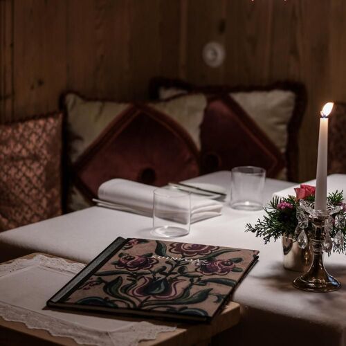 In Ladin, Suinsom means “at the top,” the summit of a refined gastronomic journey. Within two welcoming stube clad in light wood, guests discover gourmet cuisine with a polished Mediterranean accent, enriched by appealing international influences. Among the signature dishes, the grilled eel stands out for its rich flavor, while tributes to the chef’s Tuscan roots also feature, such as pici with lamb ragù and cuttlefish tartare, a surprising yet beautifully balanced and original combination. The wine list, carefully organized by grape variety, offers an intriguing range spanning from Italy’s finest labels to prestigious international selections.