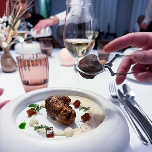 In a tastefully restored house in the village, Helena Collaud and Joeffry Fraiche extend a big-hearted welcome. Two large colourful canvases set the tone in the smart, modern interior. The polished score highlights regional, but not only, produce. Enticing snacks, house-made bread and succulent combinations of ingredients: runner beans with Colonnata bacon, courgette flowers stuffed with fresh cream cheese and redcurrants; veal, carrots and apricots… At lunchtime, choose between a set menu or à la carte lineup; in the evenings a set several-course menu only. Fine selection of Swiss tipples and splendid cheese trolley.