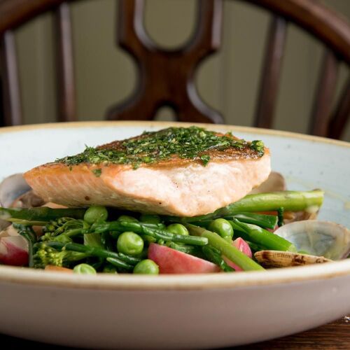 Popular with the locals and very much a village pub, with beamed ceilings, pewter tankards, open fires and plenty of cosy corners. Good value cooking focuses on tasty pub classics like locally smoked ham, egg and chips or steak, mushroom and ale pie. Service is friendly and efficient – and four tastefully decorated bedrooms complete the picture.