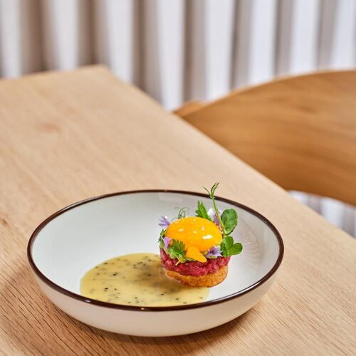This modern restaurant is located in the basement of a former silo on the Löwenbräu brewery site. In the open kitchen, which is practically integrated into the dining area, the team led by Vilson Krasnic turn out creative dishes with an emphasis on sustainability, seasonality and local sourcing. A set menu of five or seven courses is proposed – this can be vegan (specify when booking), vegetarian or include meat/fish. To accompany your food, there is an interesting selection of wines and exquisite juices, some of which are house-made – the charming, laid-back staff will gladly talk you through your options. The chefs themselves bring their dishes to your table, which is naturally conducive to conversation. N.B. There is a reservation system and you pay in advance.