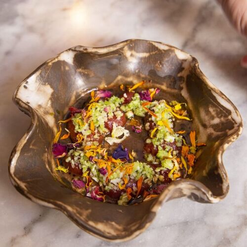 Through the mantra “A love for cooking”, an expression that encapsulates Ginés Peregrín’s vocation since his childhood, this chef conjures up Mediterranean-based cuisine that showcases his personality by incorporating influences from other cultures (Japan, Mexico, Peru, as well as the Netherlands, where he worked for several years). Choose between the à la carte (we enjoyed the risotto of homemade “gurullos” with wild cep mushrooms and red gambas from the Almería coast) and a surprise 5- or 7-course tasting menu.