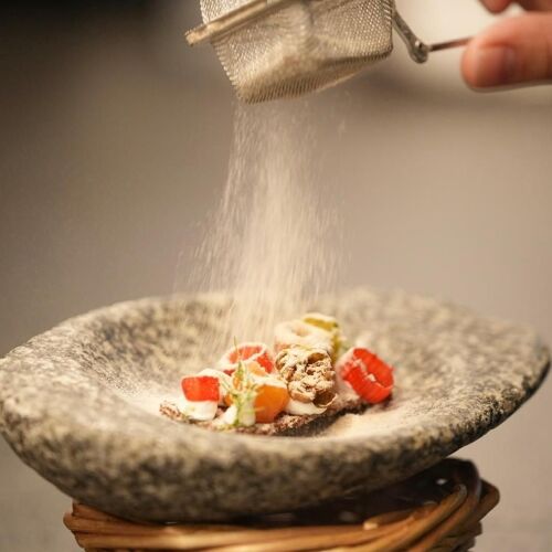 It is surprising to find a restaurant of this level in a small town but Callizo offers a perfect gastronomic experience that will delight the senses and provide an opportunity to discover the wonderful landscapes and flavours of the Sobrarbe area. The restaurant, housed in a large, centrally located stone property with a surprisingly modern decor, plays an integral role in the dining experience, which involves a staged journey through the house to discover the true culinary essence of this region, albeit with a nod to other parts of the world. The dishes served here on two tasting menus (Tierra and Piedras) are well prepared with delicate textures and distinct contrasts that fly the flag for what the restaurant refers to as “techno-emotional mountain cuisine” which showcases the small-scale local producers who supply the restaurant. One dish that we particularly enjoyed was the trout ceviche from the nearby Cinca river, which was featured in the Spanish series “21st Century Pyrenean Landscapes”.