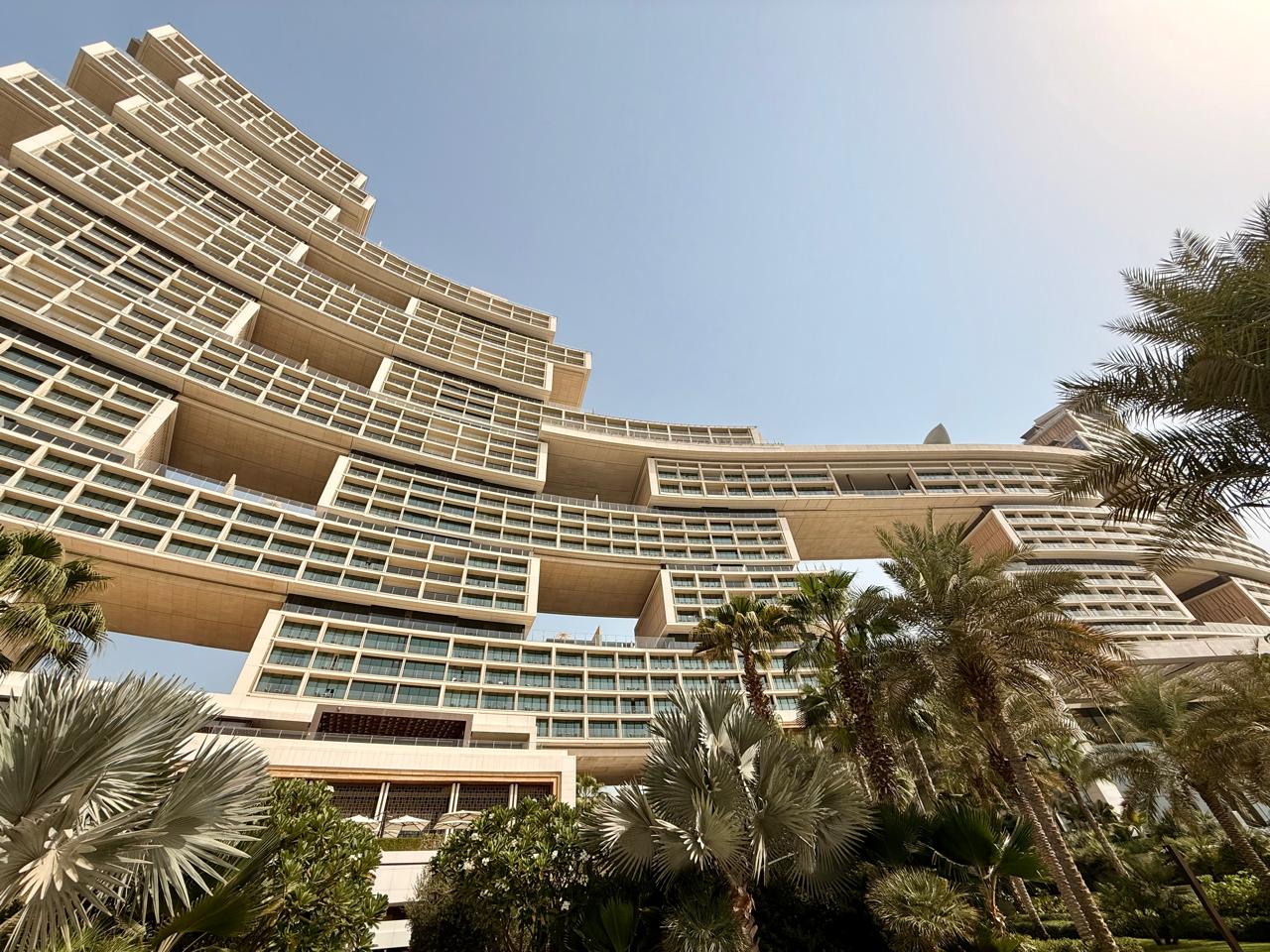You spot it from afar, turning right on the Palm’s crescent. The humidity may blur the view, but the stacked blocks of Atlantis The Royal are unmistakable. As you pass two roundabouts and the neighboring Atlantis The Palm, the sheer mass and scale of this new icon become clear. Its cubic design evokes nostalgic memories of Lego creations — only now, they’re life-sized and luxurious.The porte-cochère is a spectacle in itself. A lineup of luxury sports cars and SUVs is parked with precision, flanked by preppy valet attendants. You hand off your car to a smiling gentleman and step toward the revolving doors, passing glass waterfall walls that appear to be simultaneously ablaze.