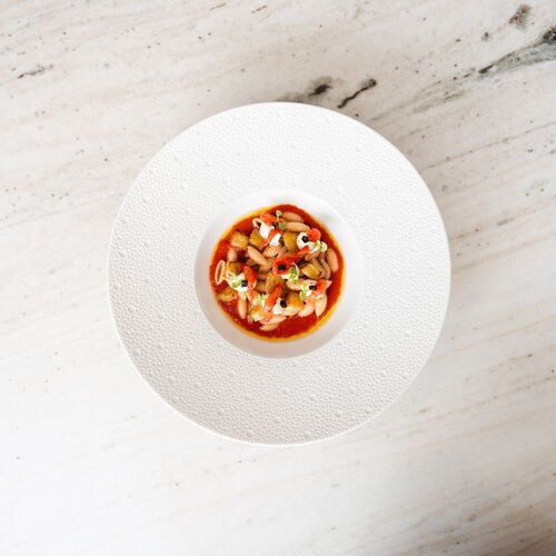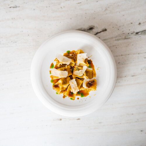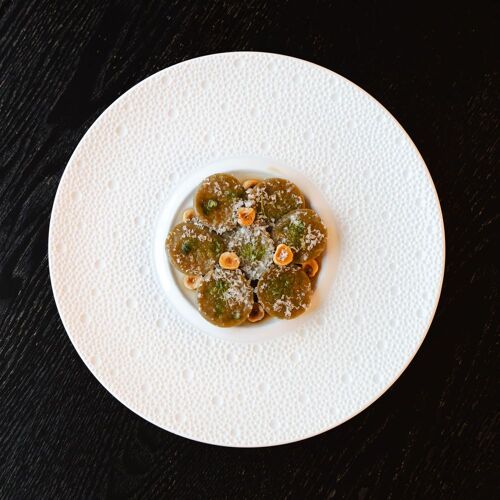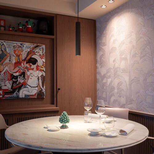 A charming little Italian restaurant run by a chef who hails from Lorraine but has Sicilian roots, and his Milanese partner. By no means fixated on the classic repertoire, the restaurant serves a tasting menu entitled "Scoperta della Pasta", which showcases their house-made pasta. Much care goes into dishes that incorporate top-notch, at times premium ingredients, many imported from Italy: fusilli with Brescia caviar, barba di frate and Piedmont hazelnuts; monkfish tail ravioli with hollandaise sauce; tortellini di Bologna stuffed with mortadella and Parma ham, topped with a Parmesan emulsion. With its pared-back decor, just a handful of tables, dark parquet flooring, white walls and colourful Abstract paintings, the interior is both contemporary and intimate. Excellent selection of local wines.