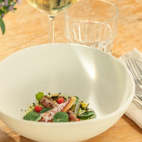 Set in a former warehouse by the picturesque Noorderhaven, this relaxed "brew-bistro" offers a delightful blend of pub atmosphere and attentive service. When you first enter, you will be greeted by the aroma of freshly brewed beer and the sight of towering brewing kettles. The kitchen team pushes the boundaries, effortlessly weaving between the classic and creative. From steak tartare with an Asian twist to melt-in-your-mouth pork cheeks with dukkah and sesame seeds, this cuisine is vibrant and imaginative. The house beers perfectly complement the dishes, adding a personal touch. What a place!
