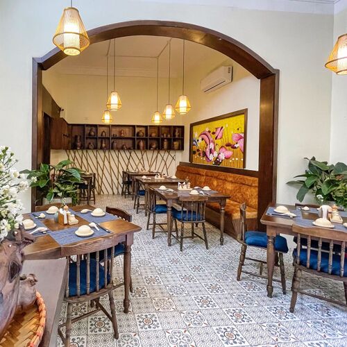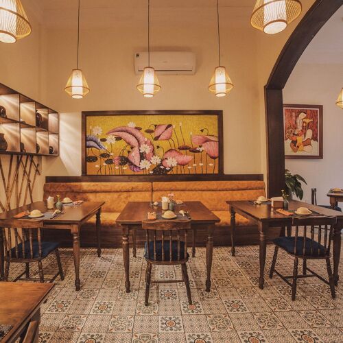 In a popular area teeming with eateries and buzzing with energy, The East stands out from the crowd with its excellent Northern Vietnamese cuisine. Start with the crab spring rolls wrapped in a fine, crispy skin packed with savoury filling. The bún chả Hanoi (grilled pork and rice vermicelli) is the signature dish here and a street food staple in the capital. The Vietnamese-style flan rounds off this enjoyable dining experience. The smart two-storey house also sells ceramics created by local artisans.
