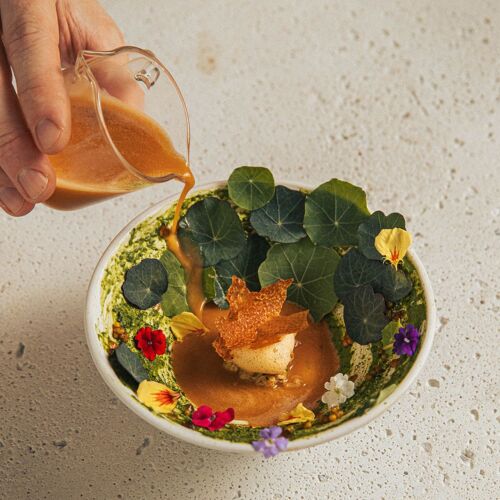 Established in an entirely rehabilitated industrial wasteland (an early-20C textile factory), chef Félix Robert and his wife Nidta, having previously worked for Alexandre Gauthier at La Grenouillère in Tokyo and then at Troisgros, now give free rein to their talents in a stripped-back, stylish interior. The chef's creative and personal repertory is dominated by seafood and vegetables and liberally scattered with nods to Japan and Asia – tempura, bao, Vietnamese coriander and Thai curry are unveiled in set menus. One example is lightly seared langoustine, flanked by a frothy rhubarb jus and subtly perfumed with ginger – stunning and oh so convincing! A restaurant whose dazzling success is well deserved.