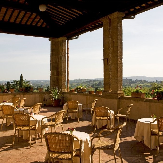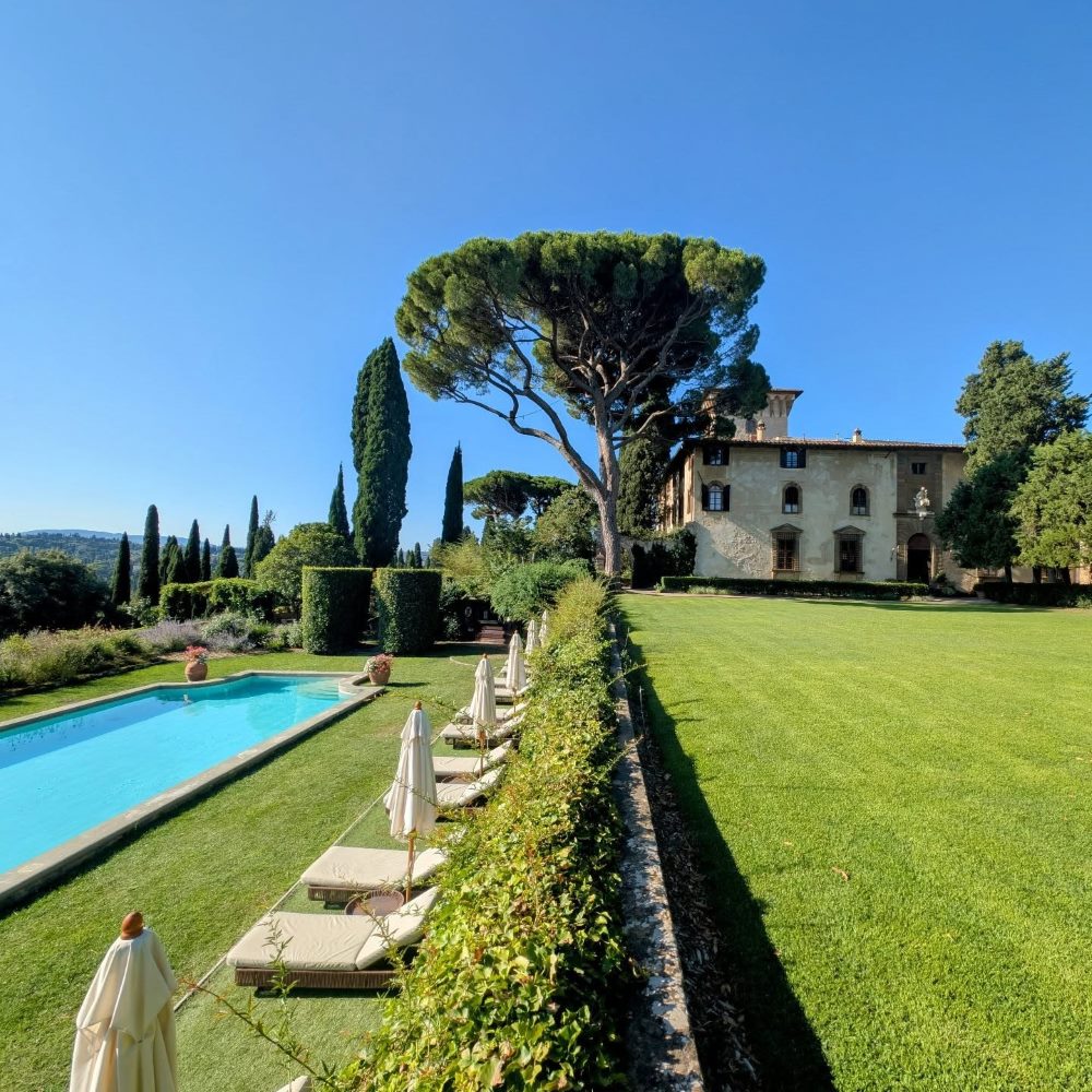 Perched on a hillside to the south of Florence, Torre di Bellosguardo lives up to the meaning of its name: tower of the beautiful view. The idyllic setting is well worth the 15-minute uphill walk from the city. Full of museum-worthy antiques and wrought iron lamps, this Renaissance villa’s grand foyer features frescoes by the artist Bernardino Poccetti, whose works can also be spotted inside the Pitti Palace. The outdoor pool, surrounded by lemon trees, might just have the best view of Florence, and is the perfect place to spend a sunny afternoon, aperol spritz in hand. Once owned by a friend of Dante, the hotel continues to welcome illustrious company, including celebrities like Kate Moss, Emma Thompson, and Daniel Day-Lewis.