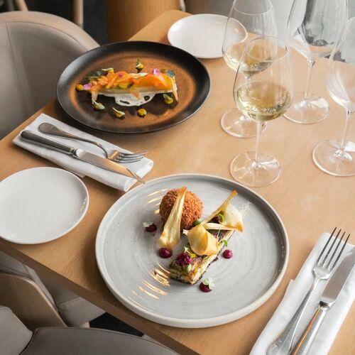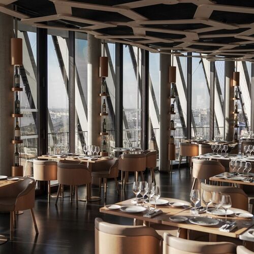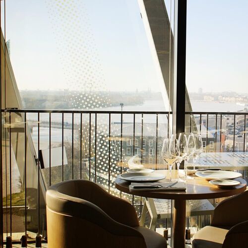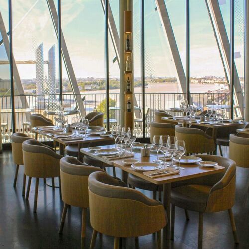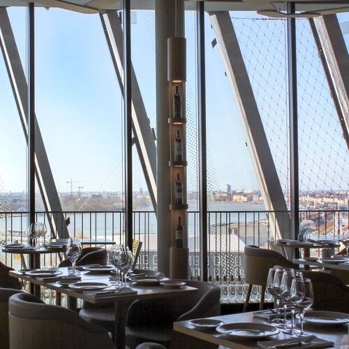 As the name implies, this restaurant is located on the seventh floor of the Cité du Vin, commanding a matchless view over the Garonne River and historic Bordeaux. The food is pleasantly up - to - date and well - prepared, accompanied by a fine choice of wines by the glass.