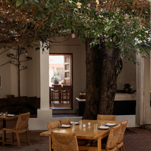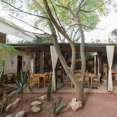 Chefs Enrique Olvera and Luis Arellano are the culinary forces behind this magical oasis that is also part of a guest house listed as a UNESCO heritage. Entirely outdoors, the dining room is a straight-edged work of smooth concrete and a canopy of trees and Edison bulbs stretched over handsome wood tables set with flickering candles. Chirping birds and burning incense add to the romance. Serving only a tasting menu, the kitchen leans on traditional Oaxacan recipes and local ingredients. Dishes like their quesabirria with shrimp, pickled cabbage, and guacamole are on point. Refresh your palate with atole with mango and passionfruit sorbet before an indulgent flourless chocolate cake with ice cream.