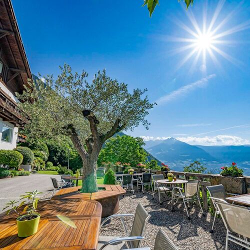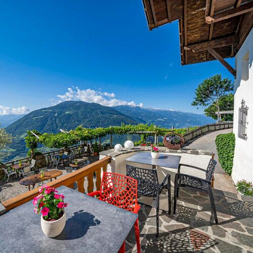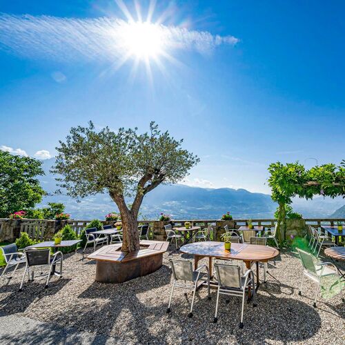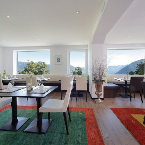 From Merano you climb to an altitude of 1 000m to this restaurant, which boasts breathtaking views of the town and surrounding mountains. The menu here focuses mainly on local ingredients which are carefully prepared without too many creative twists, resulting in delicious and generous dishes such as braised beef with a Lagrein sauce (accompanied by rice and vegetables). All the attractive guestrooms have a balcony and the same stunning view.