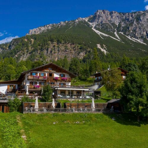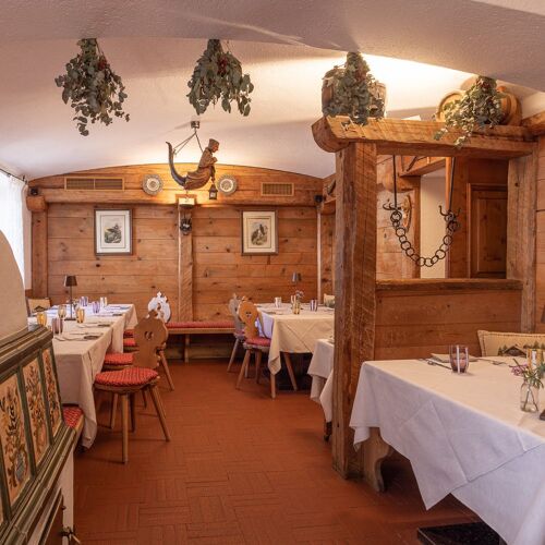 Warm little bar rooms, reminiscent of the German wine bars or "Stube", a summer terrace and well - prepared regional dishes: for those who want to escape the mundane life of Cortina for the silence of an isolated "baita" [mountain hut]. Delightful rooms, colourfully furnished in warm tones so you can better enjoy the silence and scents of the mountains.