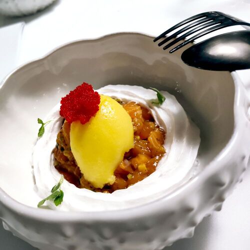 En pleno corazón de Almería, un tanto escondido en una de las estrechas callejuelas que vertebran el casco viejo, este restaurante otorga una segunda vida a un antiguo asador. En este local, con amplios salones que mantienen esa esencia castellana pero que se muestran renovados (de hecho hay uno con un bello mural que refleja un gran pulpo monocromático), plantean una propuesta tradicional actualizada que lejos de centrarse solo en las carnes a la brasa pone mucho el foco en los pescados y mariscos del día, para degustarlos a la parrilla.