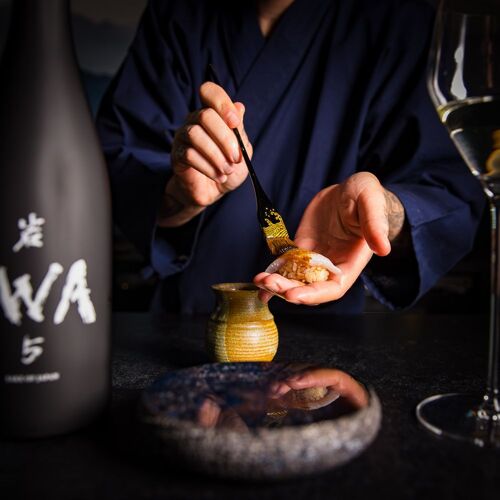Arrive early and enjoy a glass of sparkling wine before being called in, as all guests are seated and served at the same time. Enjoy one or two small dishes before a parade of nigiri, which may include hamachi, shima aji, as well as bluefin tuna. Their uni rice is deliciously mixed with wasabi and topped with masago arare for a bit of crunch, marking the end of the savory dishes before a dessert of sorbet made in house.