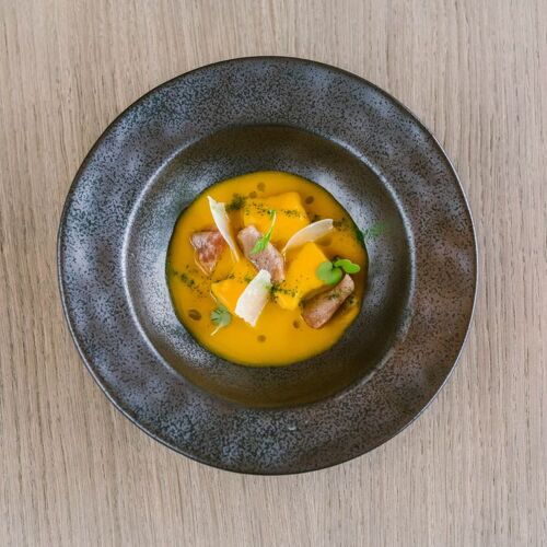 Se halla en el EcoResort Mas Salagros, el primer hotel 100% ecológico de España, y debe verse como un oasis de tranquilidad dentro de la Serralada Litoral, un paraje natural protegido a pocos minutos de Barcelona. El restaurante, que con su nombre hace un guiño a la fecha de los primeros documentos sobre la masía del edificio principal, presenta un ambiente contemporáneo y comparte el acceso con otro local más informal (Cibus, especializado en brasa y arroces). Encontrarás una cocina contemporánea que toma como referencia el producto ecológico certificado, donde la temporalidad, la proximidad y la pureza son esenciales (muchos provienen de su huerto ecológico, frente a la masía, y de productores locales comprometidos con prácticas respetuosas con la tierra). La experiencia gira en torno a tres menús degustación servidos, exclusivamente, a mesa completa: 1497, Albor y Tierra, cada uno con una narrativa distinta que refleja el paisaje, las estaciones y su respeto profundo por el origen.