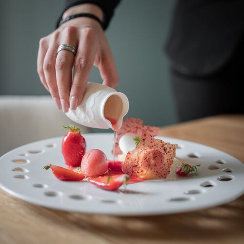Idyllically located for anyone touring the châteaux of the Loire, this inn, firmly in the zeitgeist, is run by an enterprising couple who work together in a bucolic setting of forests and meadows. The original 18C farmhouse has been replaced by a modern building, which reflects the chef's culinary ethos that favours local produce (girolle mushrooms, regional veggies, honey, Racan pigeon, Touraine pork, etc.), but also his homeland, Brittany, illustrated by a wafer-thin tart of spider crab covered in a warm mayonnaise flavoured with sea urchin roe. Each legible dish is a masterclass of exquisite plating and crisp forthright flavours.
