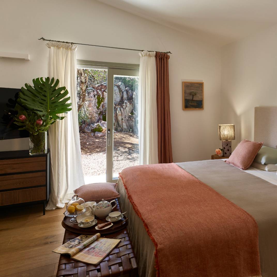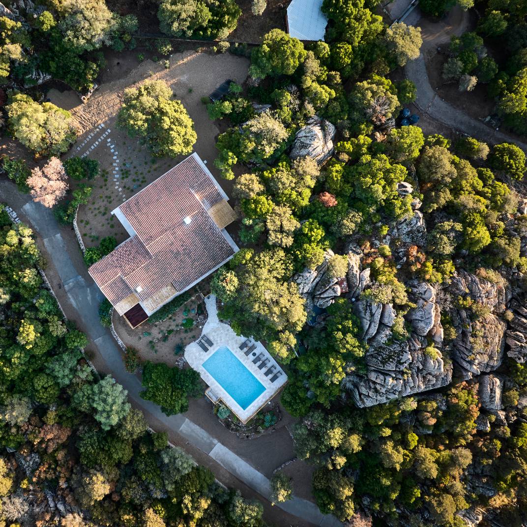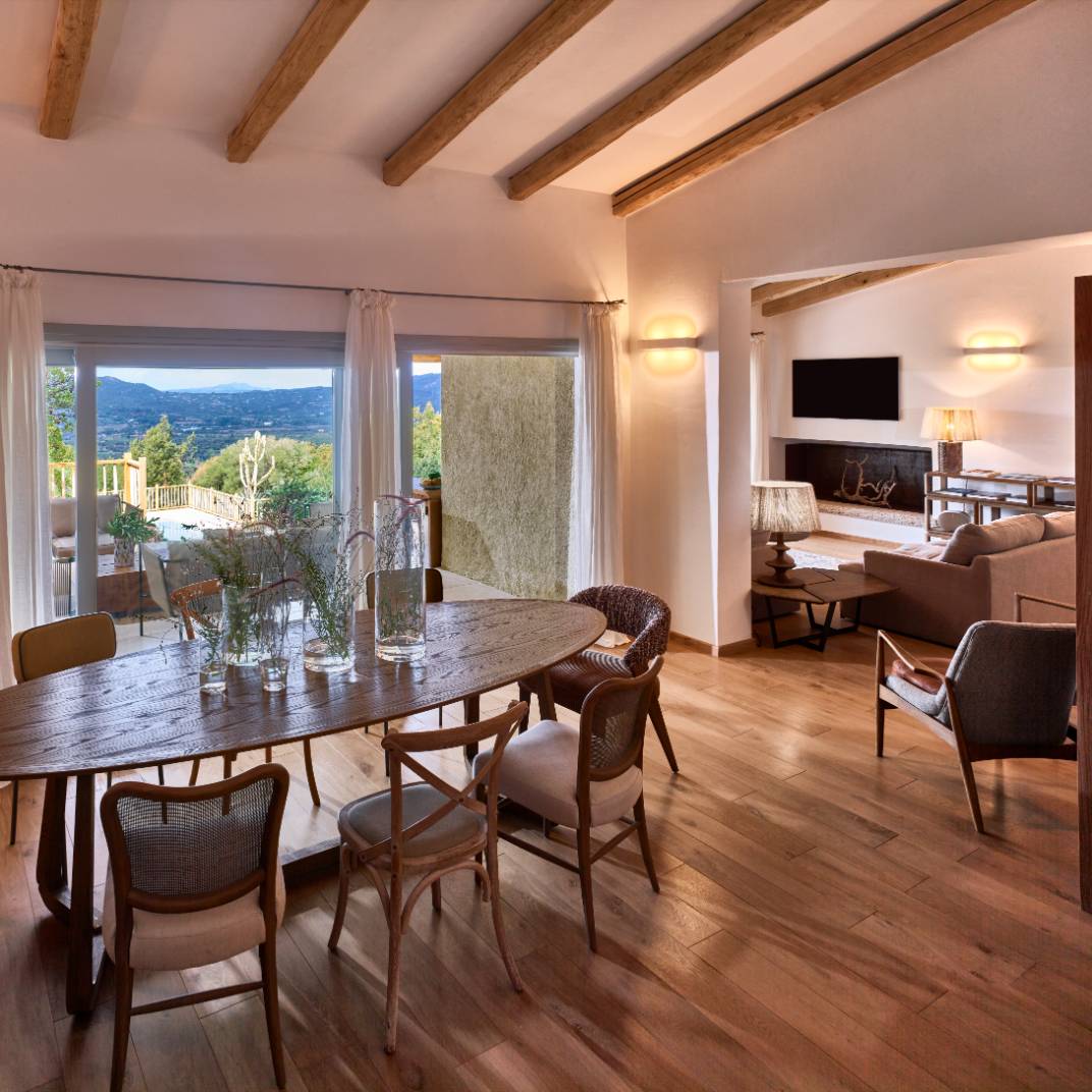 Es un hotel que solo tiene suites y cada una de estas incluye un patio, un jardín y una piscina, además de un salón interior y todas las comodidades que cabe esperar en un hotel rural moderno. Los espacios interiores tienen un estilo contemporáneo, pero con toques de la construcción tradicional sarda, lo que les confiere una riqueza de texturas y una personalidad rústica lujosa.