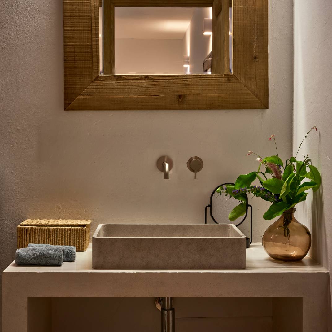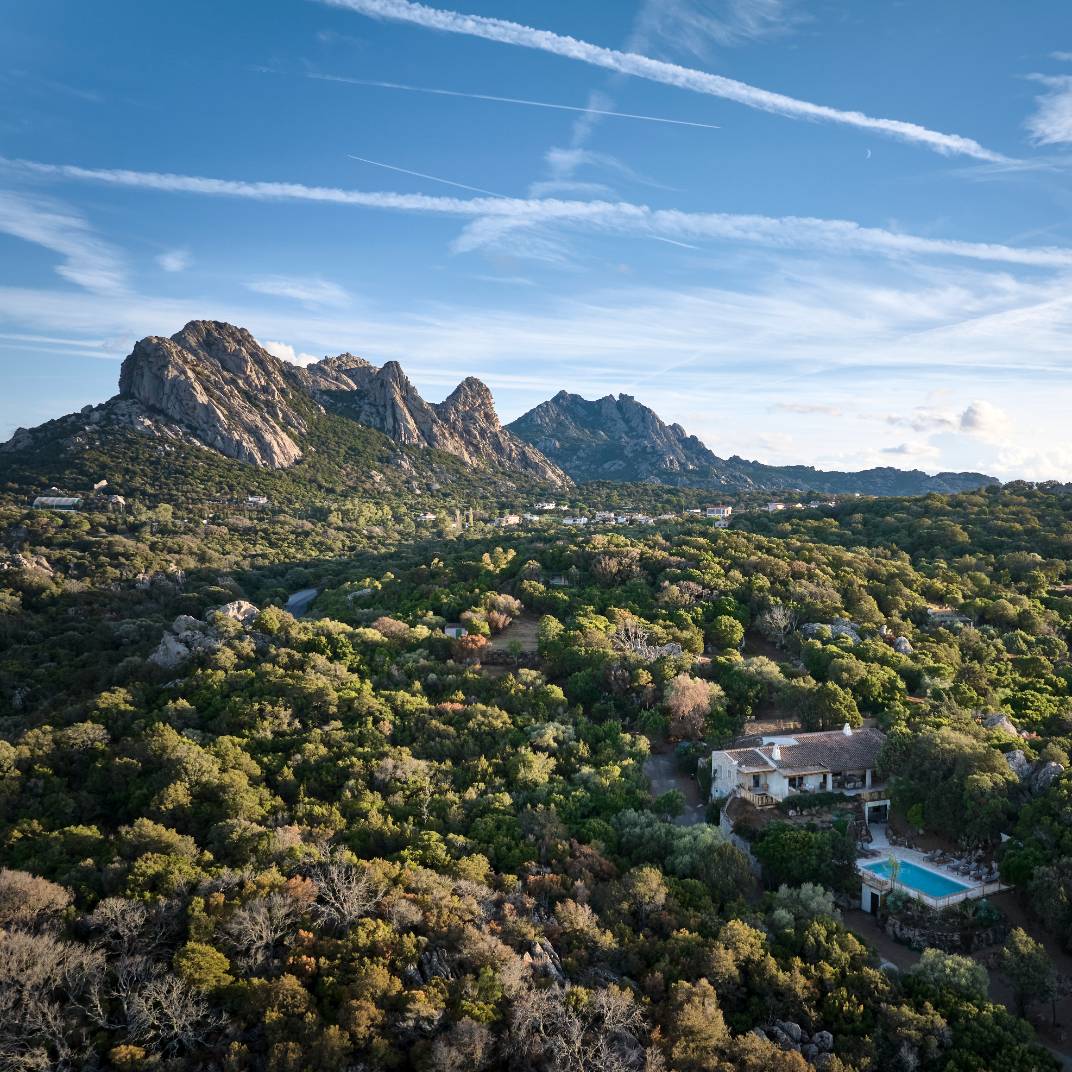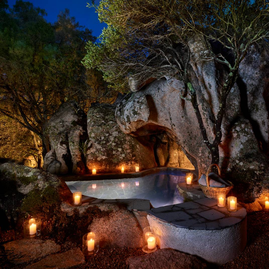 Es un hotel que solo tiene suites y cada una de estas incluye un patio, un jardín y una piscina, además de un salón interior y todas las comodidades que cabe esperar en un hotel rural moderno. Los espacios interiores tienen un estilo contemporáneo, pero con toques de la construcción tradicional sarda, lo que les confiere una riqueza de texturas y una personalidad rústica lujosa.