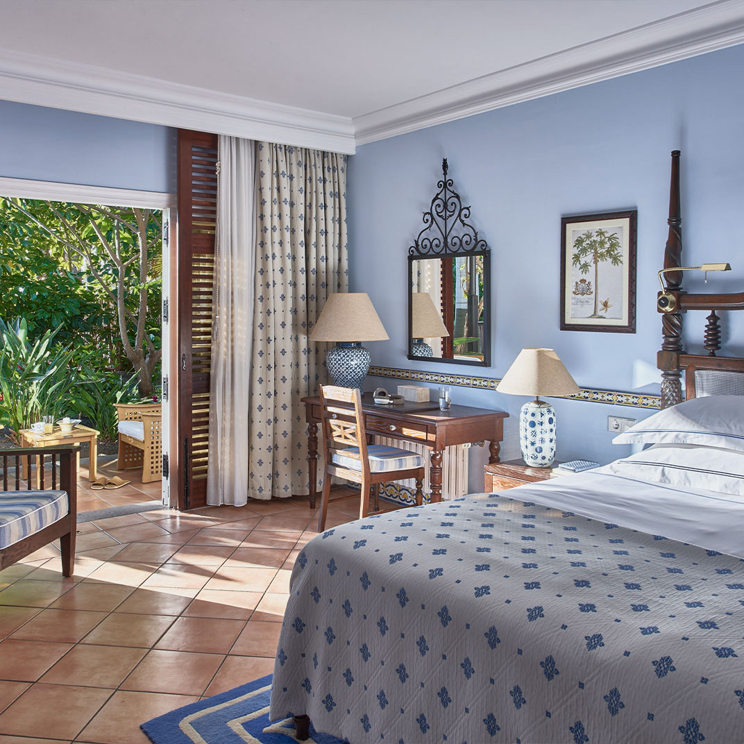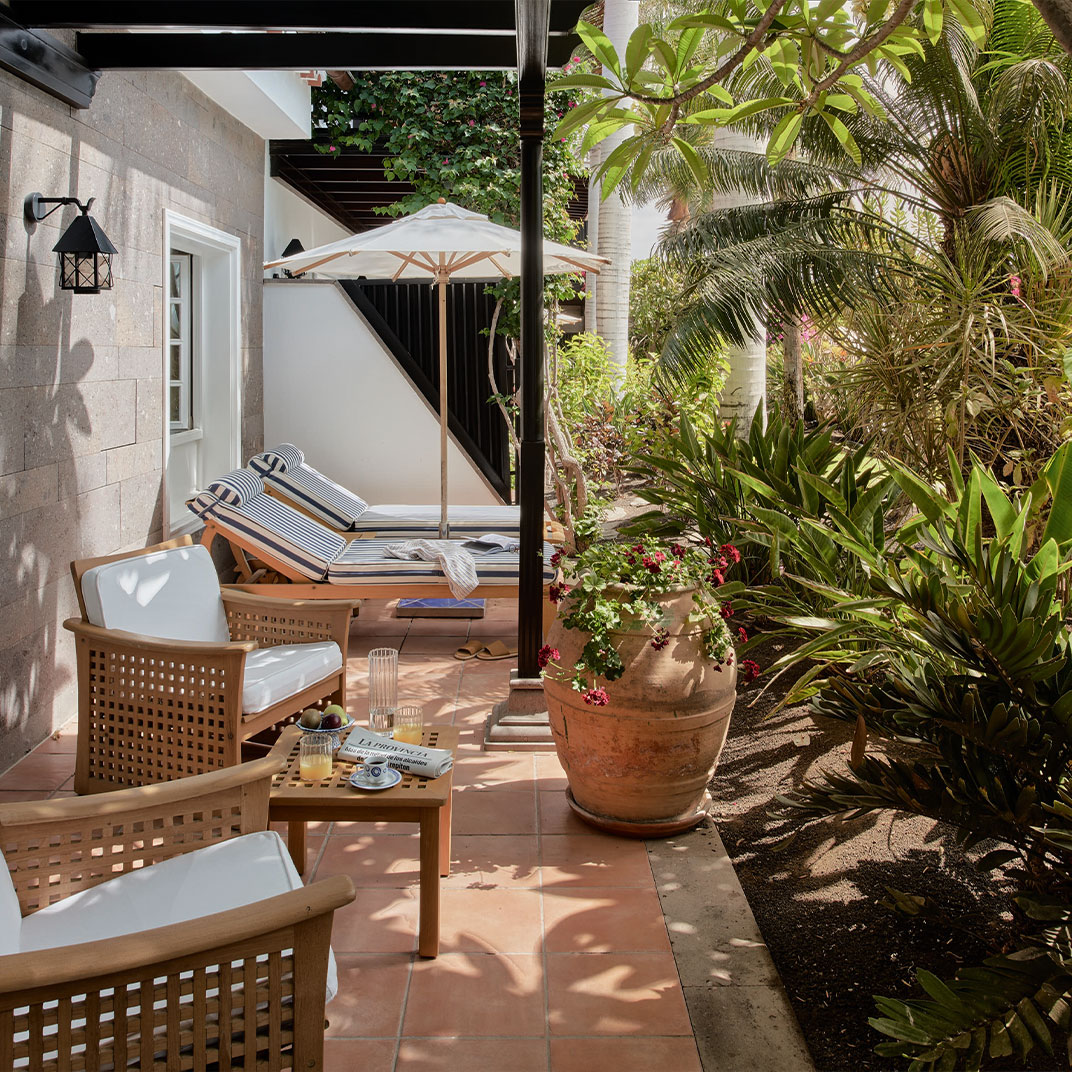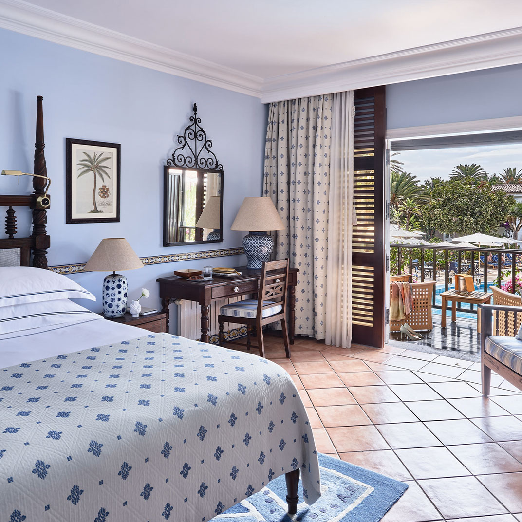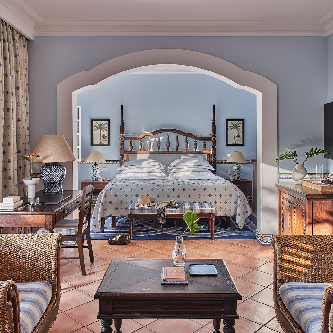 The Grand Hotel Residencia enjoys a prime location on the coast of Gran Canaria, sitting under leafy palms just a few minutes’ walk away from the sandy beach of Maspalomas. Attractive rooms come in sky blue shades with a mix of prints and textiles, dark wood four poster beds, and the highlight, balconies surrounded by lush greenery. The restaurant serves a Mediterranean-inspired menu with a particular focus on local ingredients; the fruit and vegetables for instance come from a nearby finca on the island. There’s also a pool bar for tapas, and in the evening, a piano bar for live music and aperitifs. The slow living, seaside experience is enhanced with some spa time, or for a more serious approach to wellbeing, the hotel can even organize physiotherapy and medical check-ups for a complete reset. Golfers will also find three of the island’s six courses close by the hotel, and plenty of other sports take place on property, including tennis, yoga, and Tai Chi.