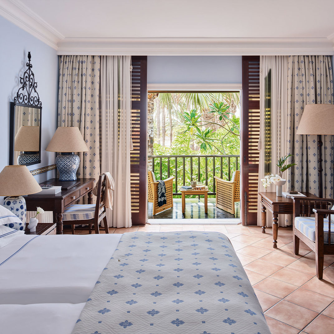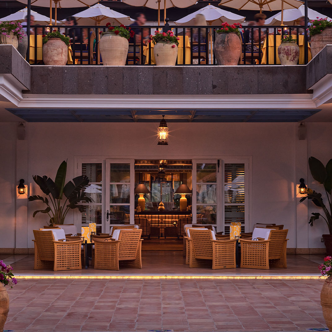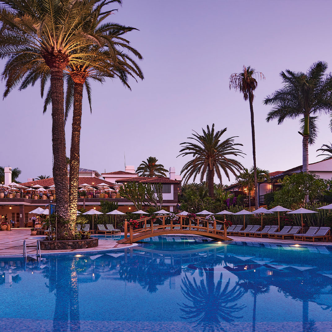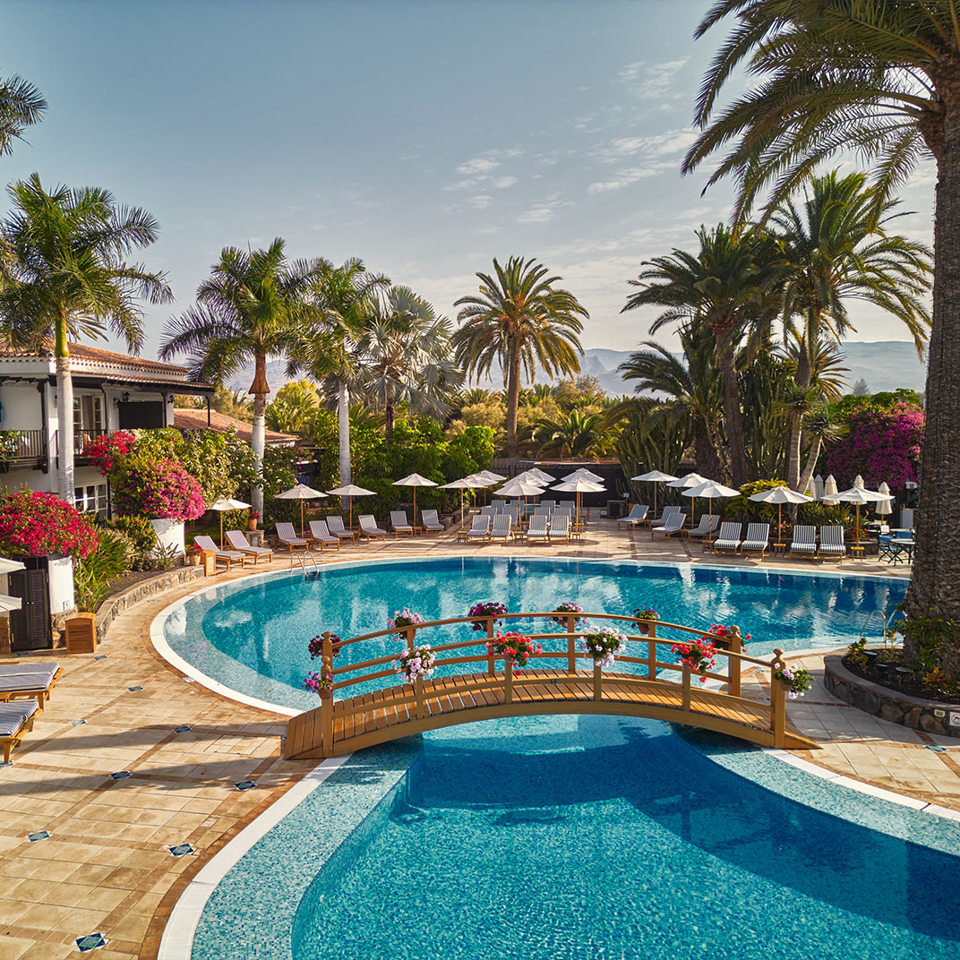 The Grand Hotel Residencia enjoys a prime location on the coast of Gran Canaria, sitting under leafy palms just a few minutes’ walk away from the sandy beach of Maspalomas. Attractive rooms come in sky blue shades with a mix of prints and textiles, dark wood four poster beds, and the highlight, balconies surrounded by lush greenery. The restaurant serves a Mediterranean-inspired menu with a particular focus on local ingredients; the fruit and vegetables for instance come from a nearby finca on the island. There’s also a pool bar for tapas, and in the evening, a piano bar for live music and aperitifs. The slow living, seaside experience is enhanced with some spa time, or for a more serious approach to wellbeing, the hotel can even organize physiotherapy and medical check-ups for a complete reset. Golfers will also find three of the island’s six courses close by the hotel, and plenty of other sports take place on property, including tennis, yoga, and Tai Chi.