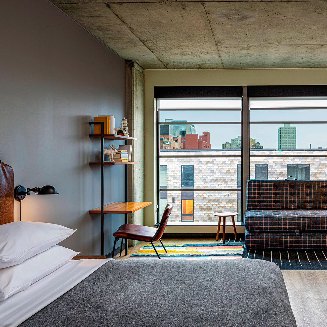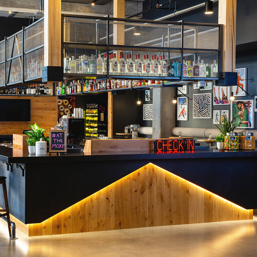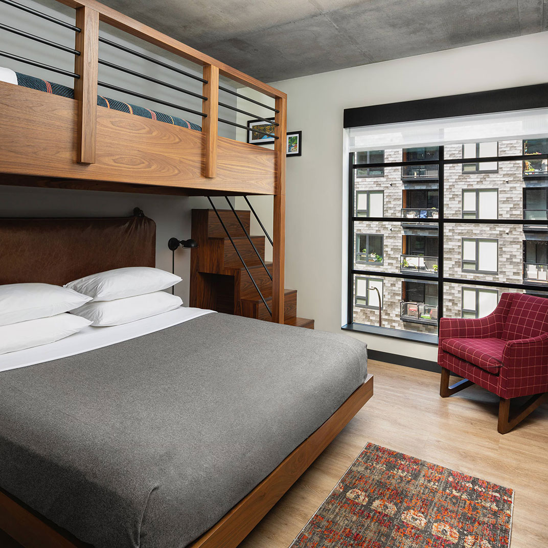 In a city that knows how to stay out late, Moxy Minneapolis Downtown delivers the right kind of energy. Located across from the stadium and minutes from the river, this hotel knows its crowd: quick check-ins at the bar, all-day gathering spots, and rooms designed for recharge, not retreat. Expect LED mood lighting, large-scale local art, and all the streaming you can handle. The gym is 24/7, the vibe skews irreverent, and the cocktails are mixed with intent. If your idea of travel comes with a soundtrack, this place plays it loud.