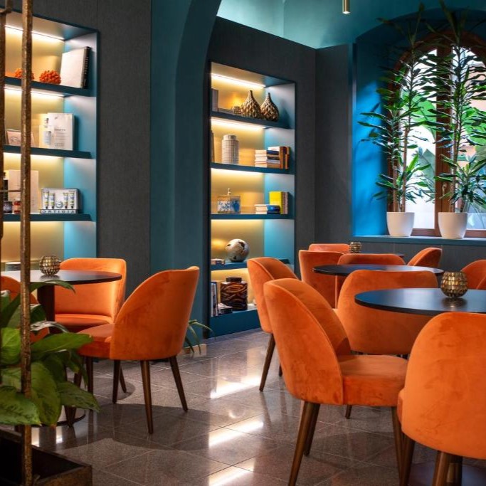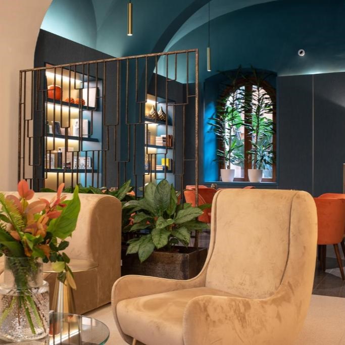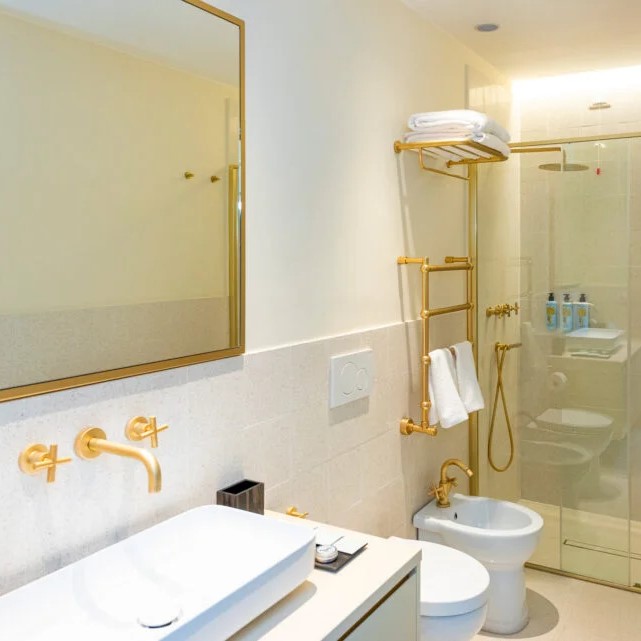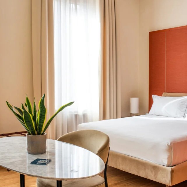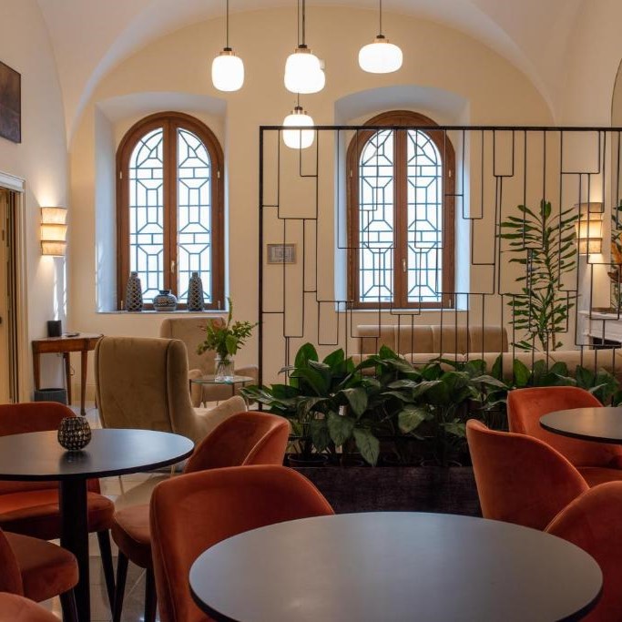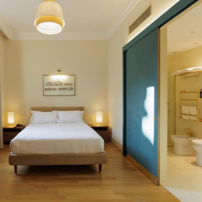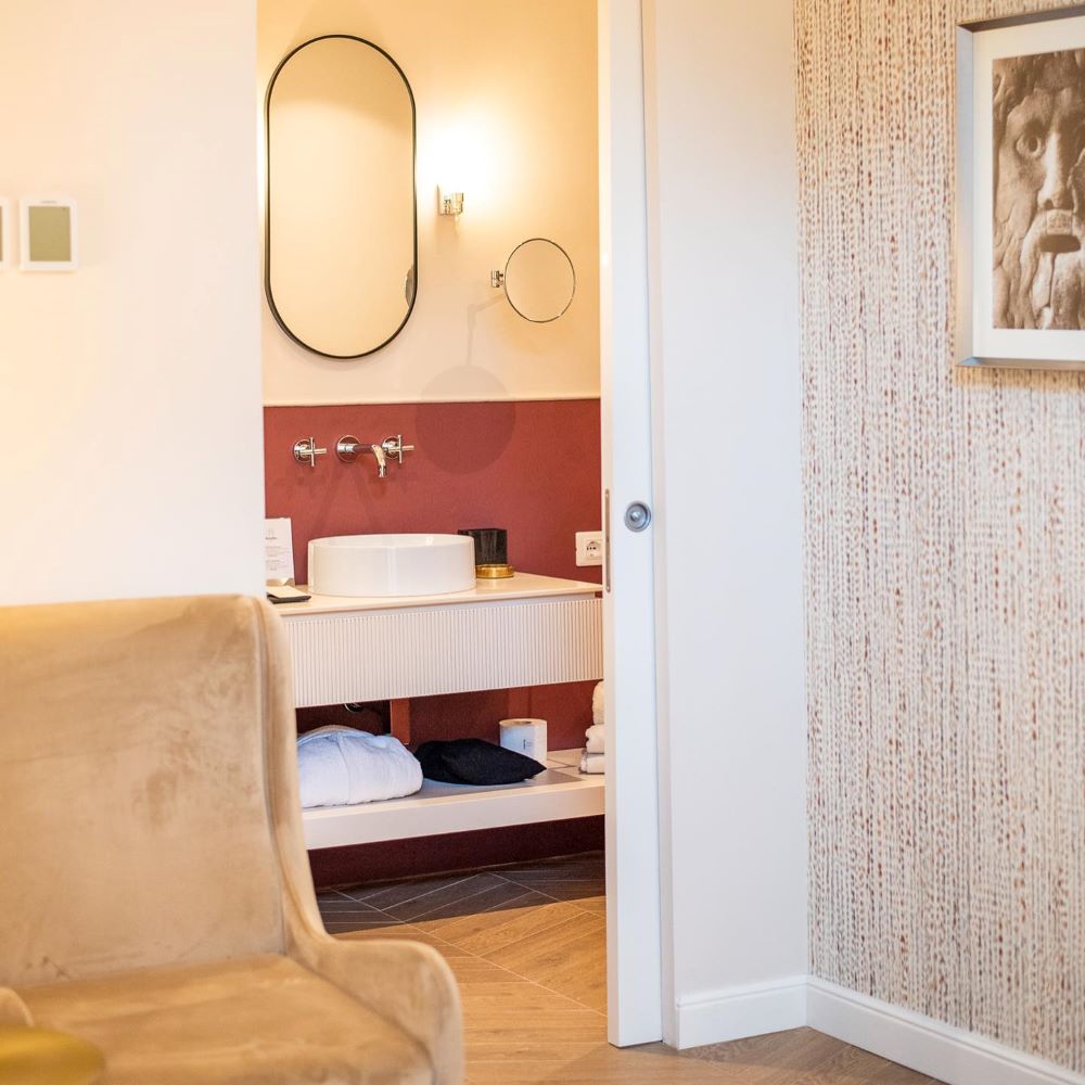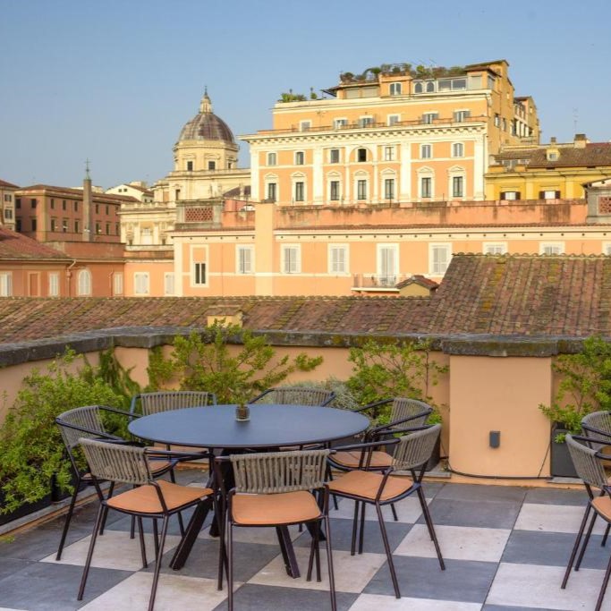 In Monti, beside the Basilica of Santa Prudenziana, Sentho Roma turns a 17th-century palazzo into a study in ease and design. Frescoed ceilings, marble finishes, and terracotta tones reflect the neighborhood’s character, while the courtyard garden, shared with the basilica, adds a rare hush to city life. The courtyard, framed by olive trees, hums with conversation from breakfast to aperitivo, and cooking classes bring Roman tradition to life. Service is intuitive and informal, the kind that makes you feel like a local with a key to somewhere special.