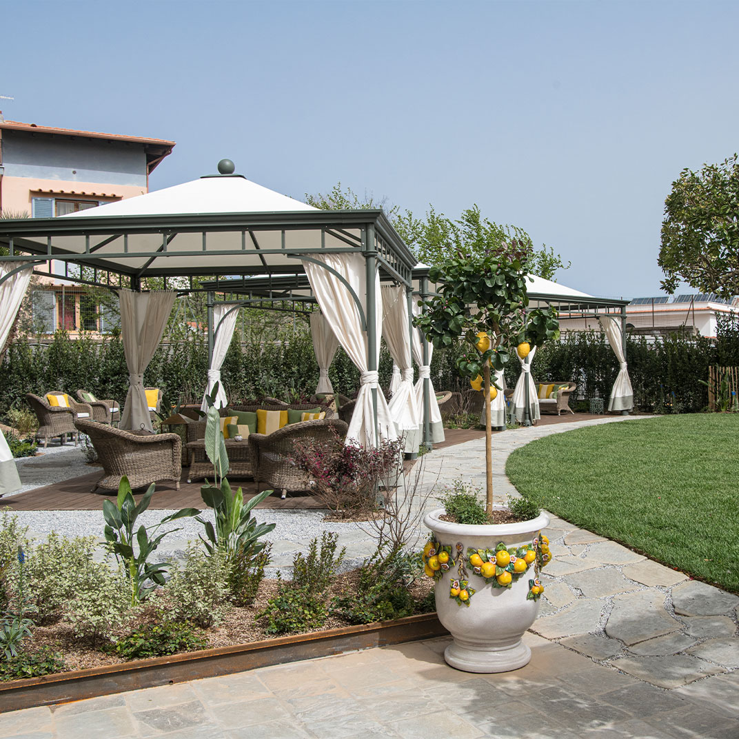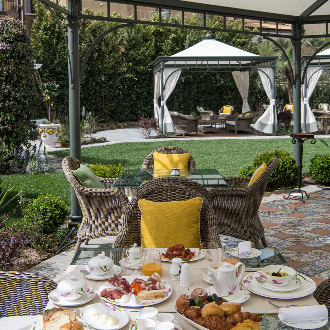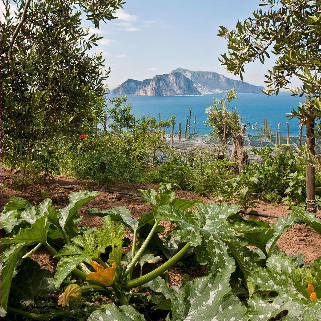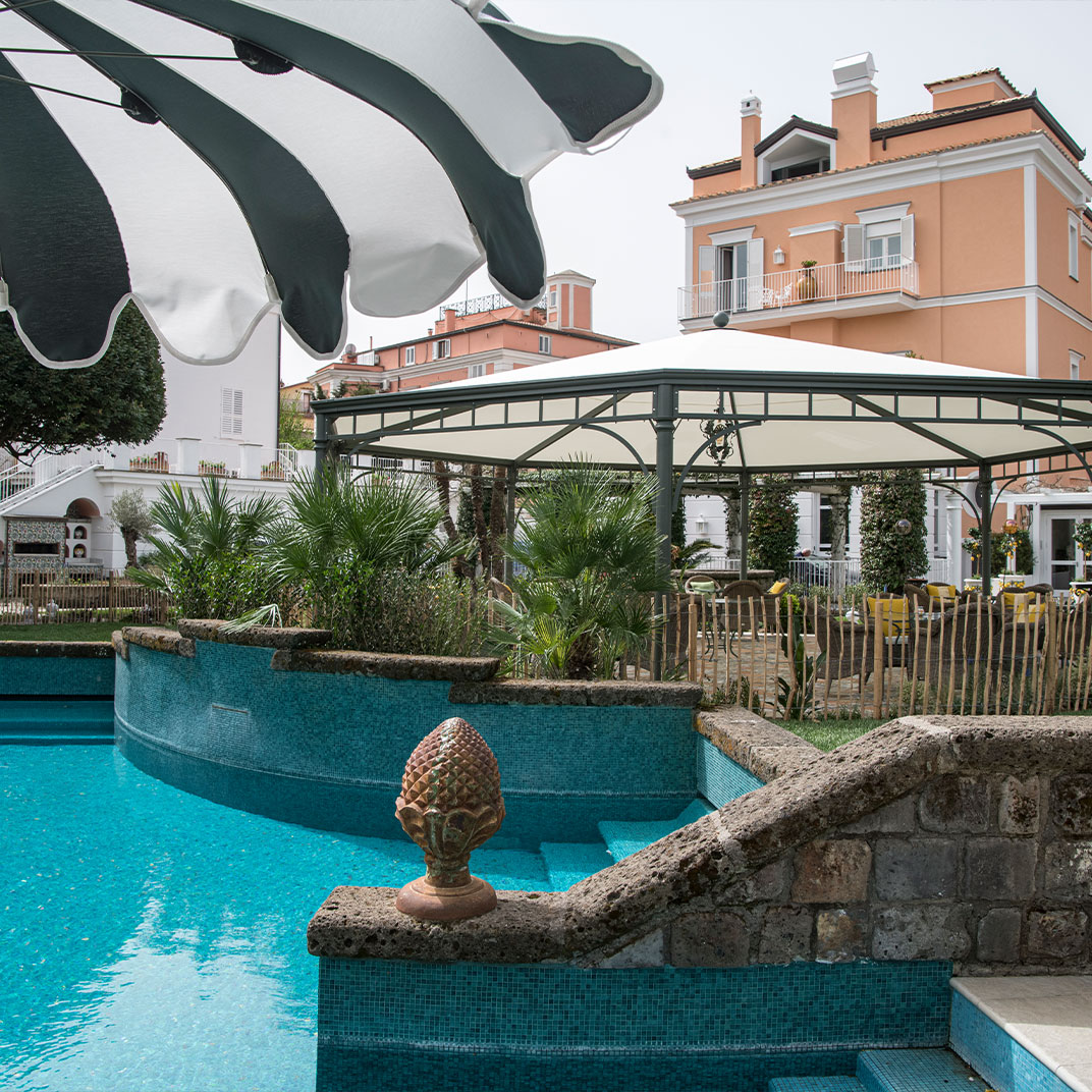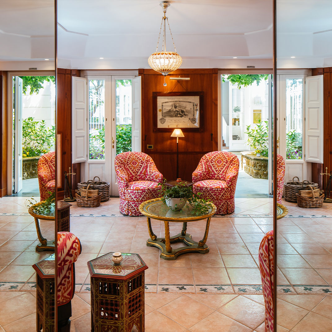 While the menu at Don Alfonso 1890’s two-Michelin-star restaurant may be more or less what you expect, given its setting just inland from the Amalfi Coast, it’s safe to say the interior design probably isn’t. This renovated 19th-century house, in Sant’Agata sue Due Golfi on the Sorrentine peninsula, has traditional elements, but the fanciful color scheme — rose, magenta, and bubble-gum pink, with accents in canary yellow, lime green and cherry red — feels straight out of Alice in Wonderland. Guest rooms are charming and cheerful, with vaulted ceilings, locally made artwork, and hand-painted mosaics. Outside, a wide covered porch twinkles with tiny lights after dark; relax with drinks after a cooking class or a tour of the wine cellar and cheese aging room, located in a pre-Roman tunnel.