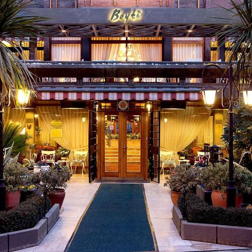 Beyti Güler is a living legend in Istanbul. Since the 1980s, Istanbulites have been coming to dine in this stylish building, a fine example of nostalgic Turkish charm, with its little fountains at the entrance and sculptures in the garden. And this historical establishment boasts no fewer than 12 dining rooms! The charcoal grill is at the centre of the kitchen, where the experienced chefs cook all kinds of meat to perfection. Take the imam bayildi, for example: meltingly tender braised aubergine topped with tomatoes, bell peppers and onions, cooked just long enough to bring out all their flavours. And be sure to try one of the kebabs, too. Traditional Turkish fare just as it should be.