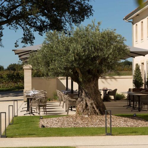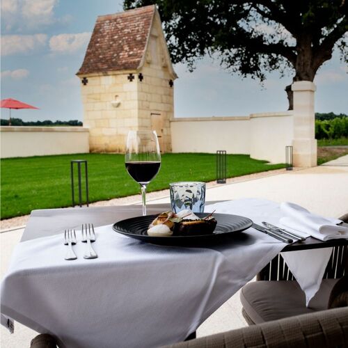 Built in the white stone typical of the region, this 19C château standing proud amid the vineyards is now a hotel-restaurant. The contemporary cuisine, at once straightforward and bold, wins diners over. Every ingredient is carefully selected and expertly prepared, for dishes such as fillet of pink sea bream, shellfish sauce vierge and mussels with samphire, or the appetising dessert trolley. Accompanied by wines from the estate.