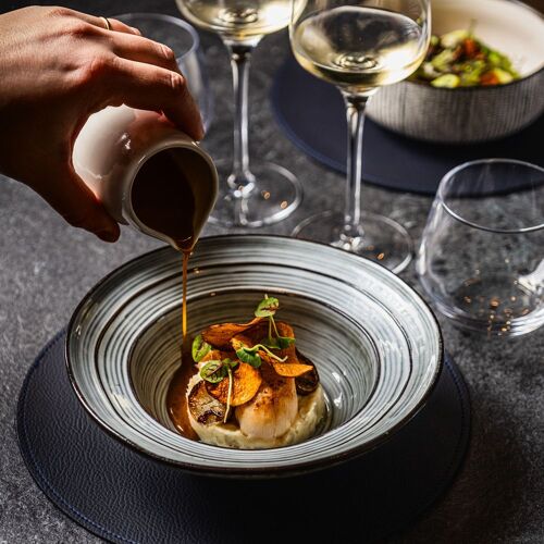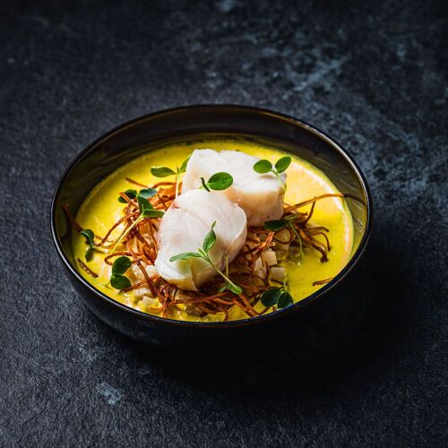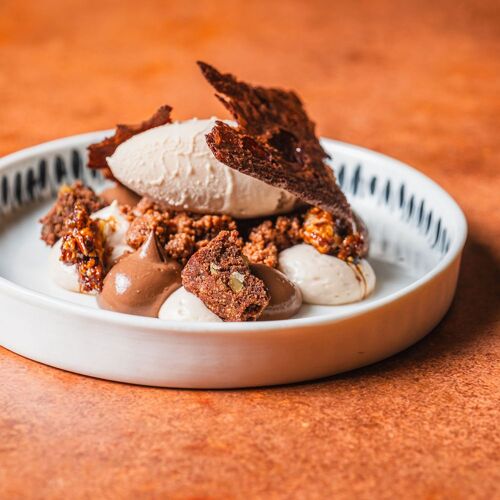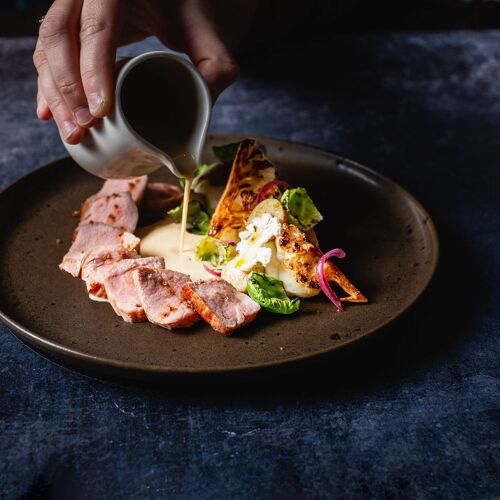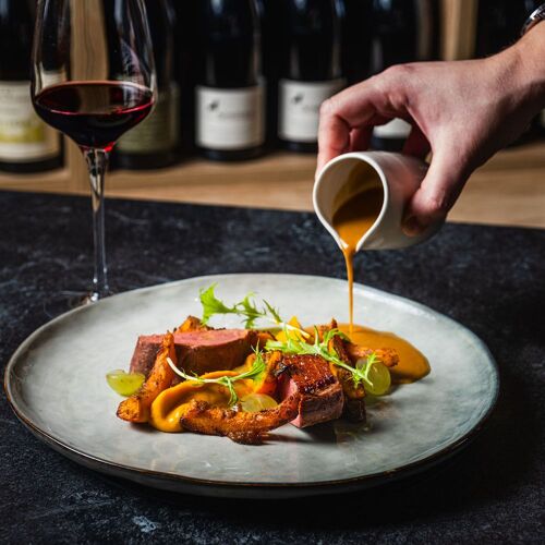 The town centre is home to this couple of professionals who met in Paris at William Ledeuil’s Ze Kitchen. He is in the kitchen, she at the front of house and together they have crafted this irresistible gourmet gem. The chef works with the meticulousness of a jeweller: fresh local produce that varies with the season, high-precision, slow cooking techniques, aromas and colours. We feasted on a beef tartare with an iced oyster cream dotted with samphire, followed by pearlescent cod in a sesame seed and roast buckwheat crust, coated with a punchy jus of saffron-flavoured cockles.