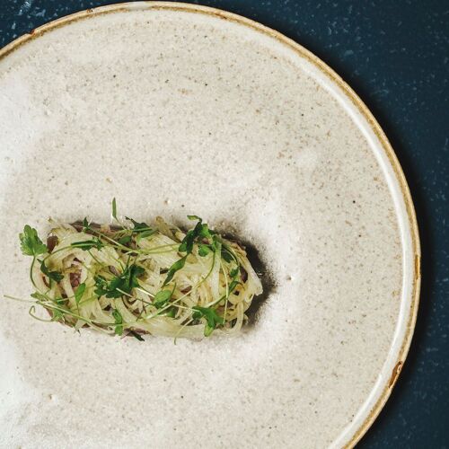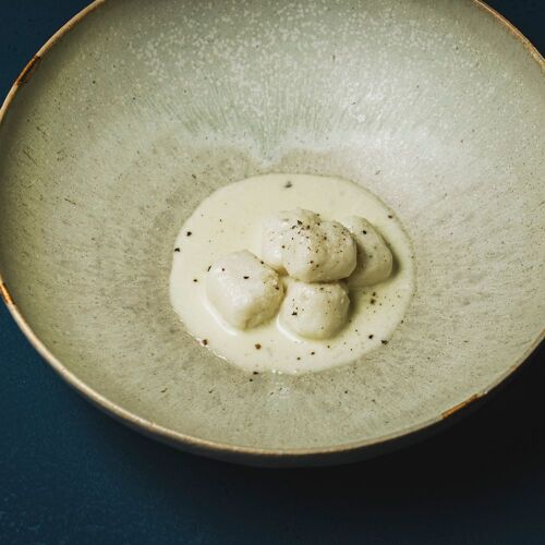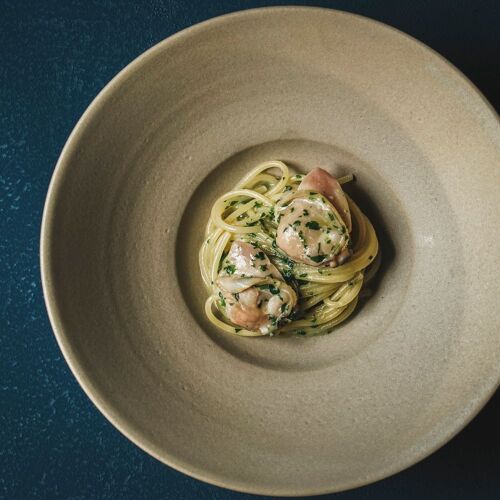 When the chef speaks of ‘Italian of points,’ he means Italian cuisine cooked to just the right temperature, with just the right flame level and so on. Arrangements of pasta and risotto are simple, but with unique variations. Meat dishes may be cooked in any of three ways: grilled on an iron plate, oven-baked, or grilled over firewood. The light touch brought to cooking, guest relations and ambience, according with the mood of today’s diners, is appealing. A harmonious triangle of three points.