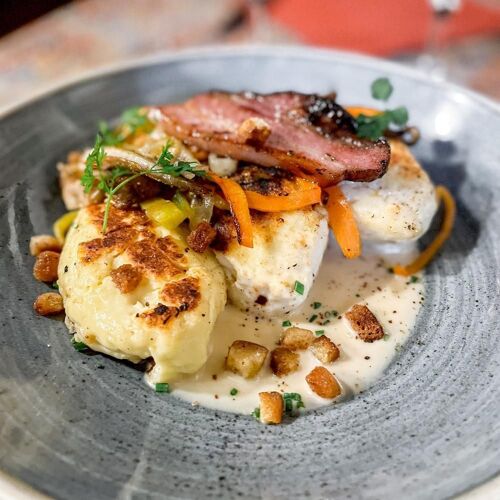 This Italian restaurant is in an ideal location at the foot of the magnificent cathedral.The concise menu offers dishes that are generous and tasty, with a focus on the produce : foie gras agnolotti, zucca al forna, costolette di vitello con burro e salvia, affogato... Pleasant terrace in fine weather and a splendid wine list.
