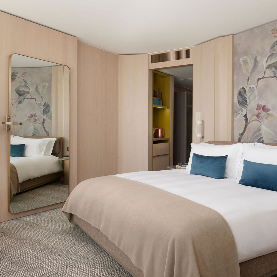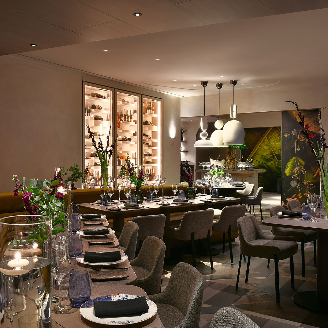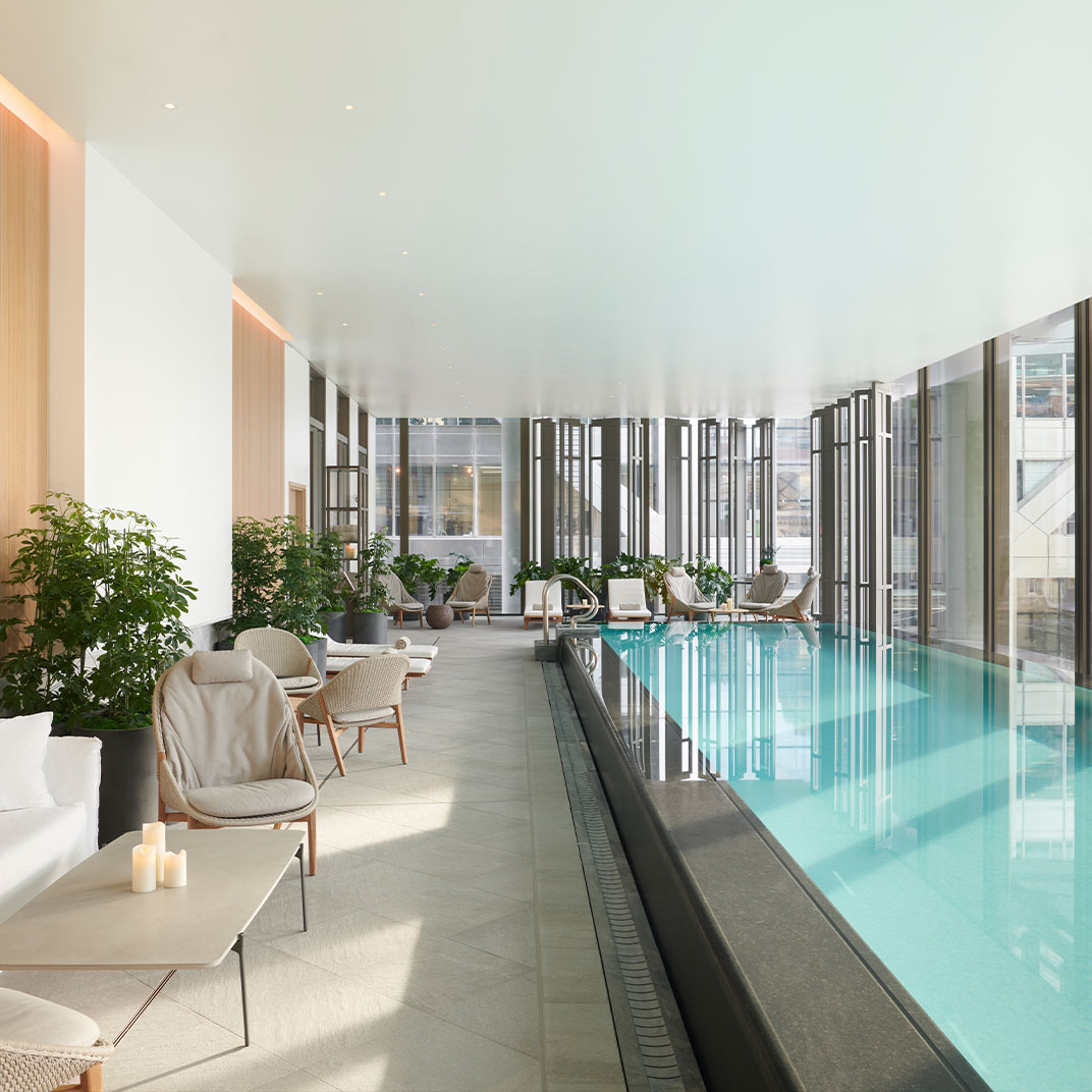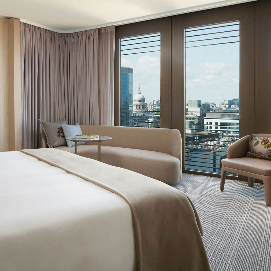 The style throughout aims for a maximally soothing effect, a welcome contrast with the buzz of the City below. This is especially true in the 237 rooms and suites, which vary in the details of their layouts, sizes, and views, but which are uniformly chic in a palatable way, and which are somewhere on the spectrum from luxurious to extravagant. And something similar can be said of the hotel’s public spaces; Sensory Spa & Wellbeing spans an entire floor of the One Bishopsgate Plaza tower, while among the restaurants is Straits Kitchen, which highlights South Asian flavors.